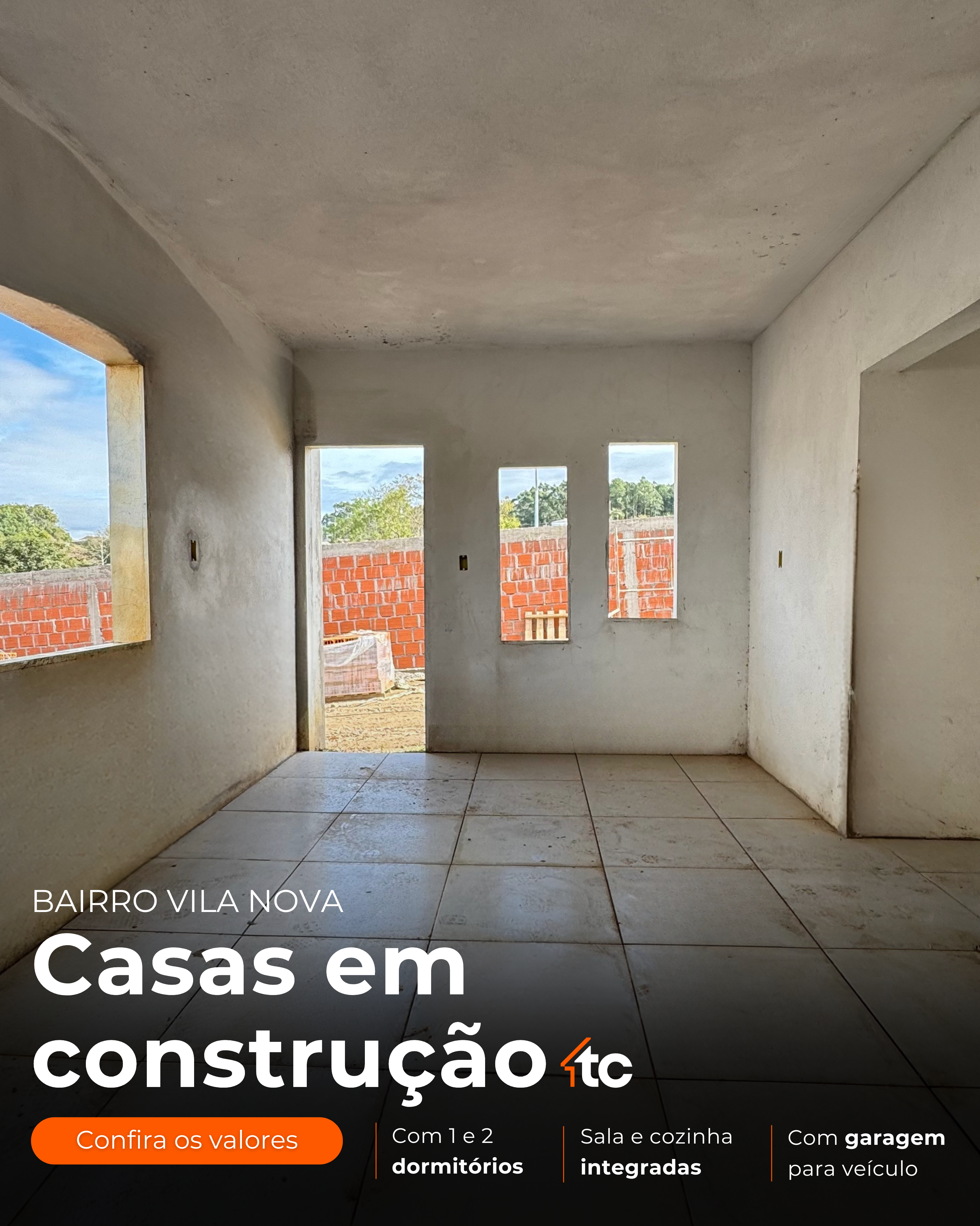 Em construção, esta casa oferece 1 dormitório, banheiro, sala e cozinha integradas, garagem para veículo, aberturas em alumínio, telhado com caixa d’água e rua pavimentada. Tudo isso em uma área total de 46,19m² (sendo 16,25m² de área aberta).