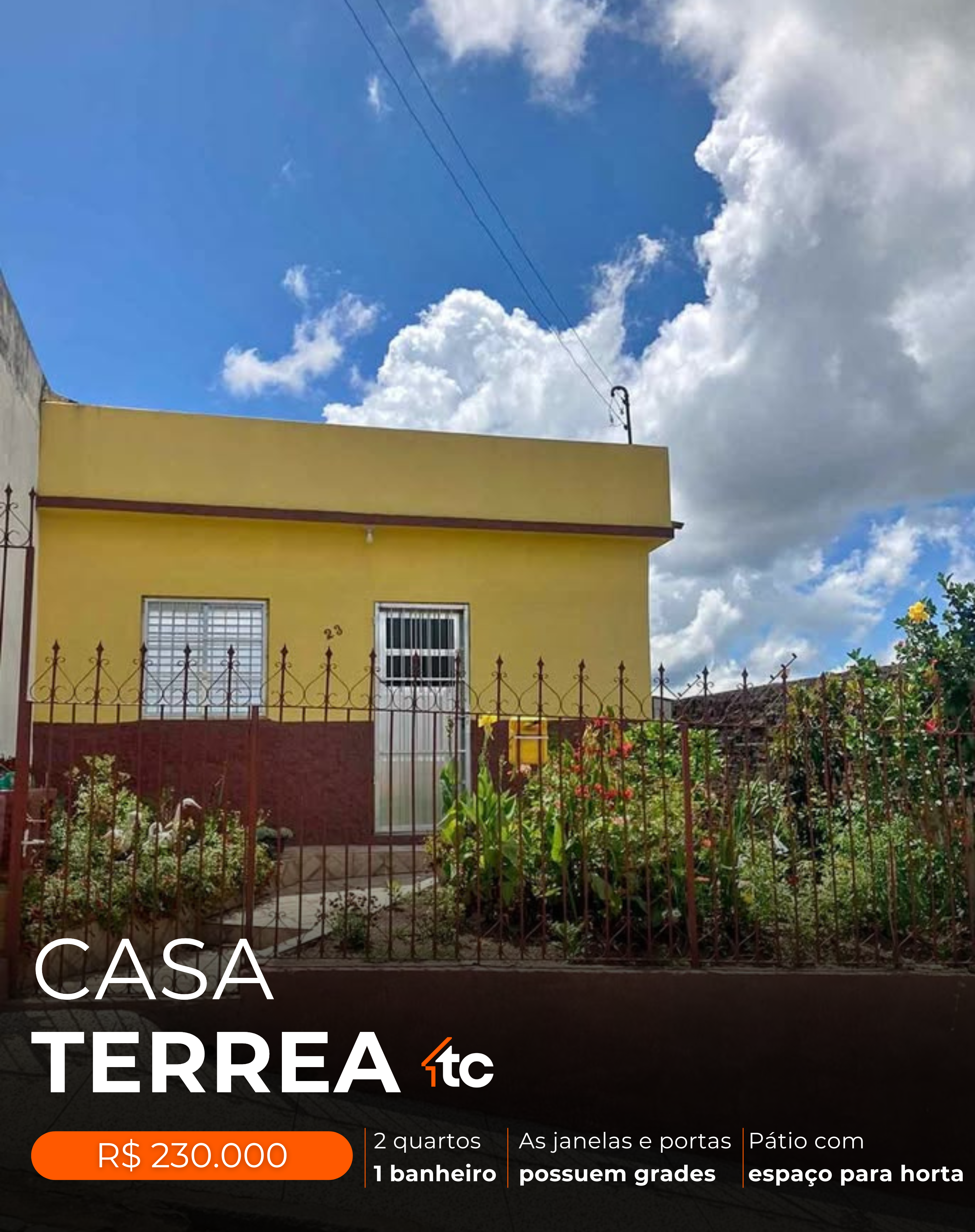 Casa para venda e ótima localização. -2 quartos 1 banheiro -Todas as janelas e portas possuem grade; -Sala/cozinha; -2 quartos; -Banheiro; -Pátio com espaço para horta; -Jardim na área frontal; -2 peças nos fundos